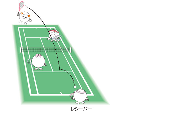 またレシーブはレシーバー側が最初におこなえる攻撃的なショット。サービスが甘ければ、相手が返球しにくいコートの隅を狙ったり、相手の前衛の届かないロビング(山なりのボール)を打ったり、いろいろなショットで積極的に仕掛けていきましょう。