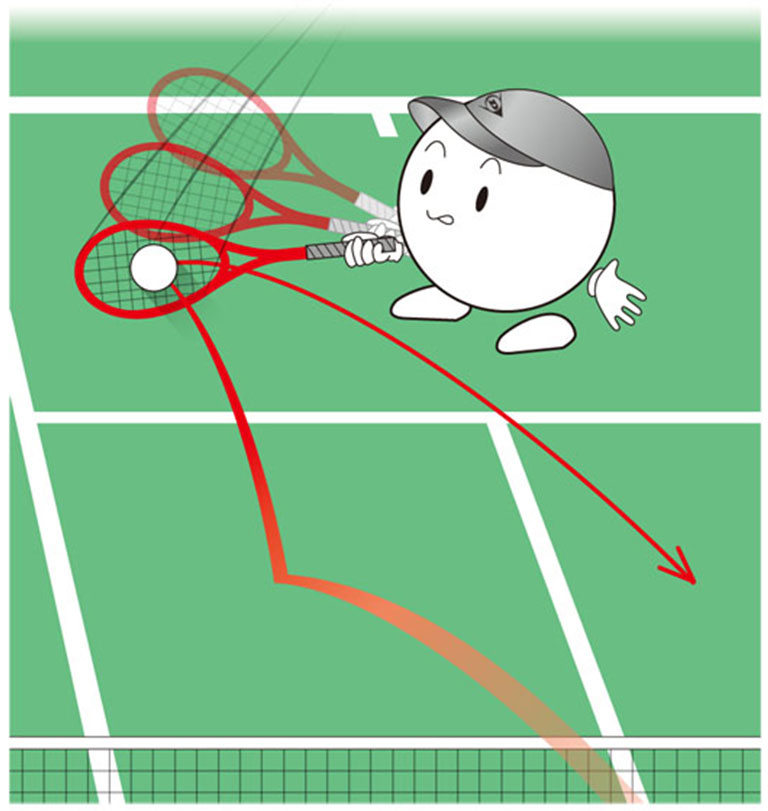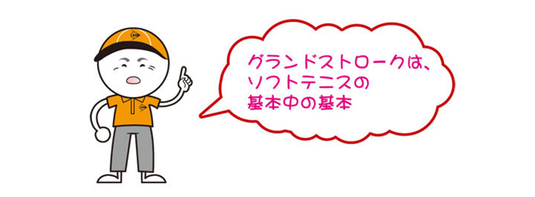 サービスとレシーブで始まったゲームは、その時点でミスがなければ、ラリー(ボールの打ち合い)となります。ダブルスの魅力は、なんといってもラリーが続くこと。その最も基本的なショットが、ボールをワンバウンドさせて打ち返すグランドストロークです。
