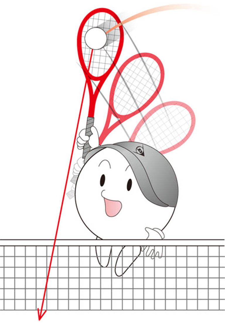 ラケットのフェイス面をまっすぐに振りおろすスピード重視のサービス。